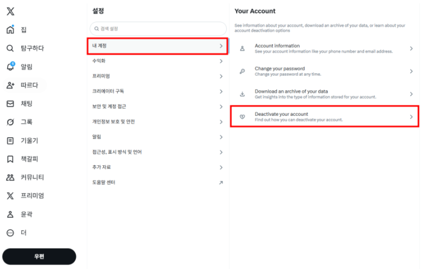 1. X 계정삭제 방법