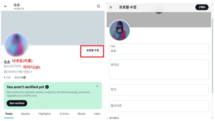 1) 프로필 페이지 이동 → 프로필 수정 클릭
