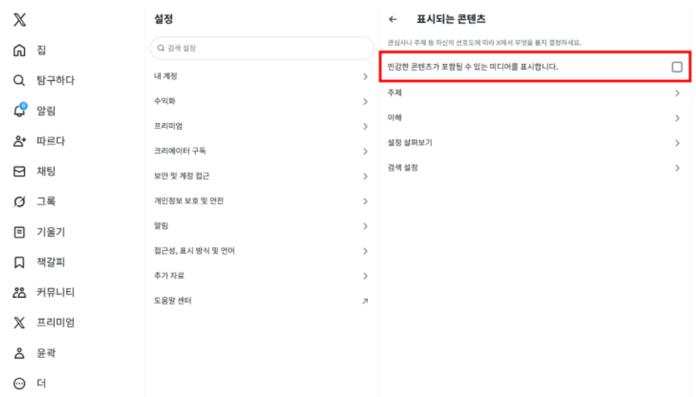 민감 콘텐츠 표시 해제