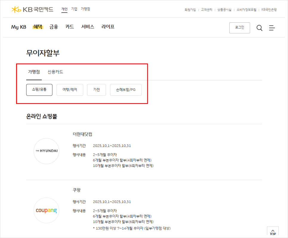 예를 들어, 'KB국민카드 6개월 부분무이자 행사'의 경우