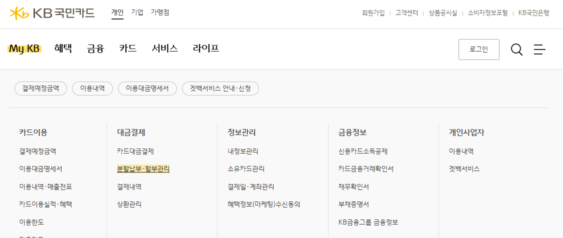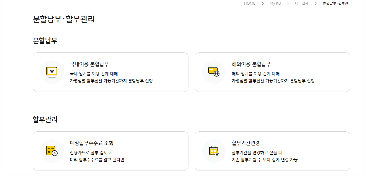 kb국민 신용카드 할부 이자 계산 수수료 실적 알아보기