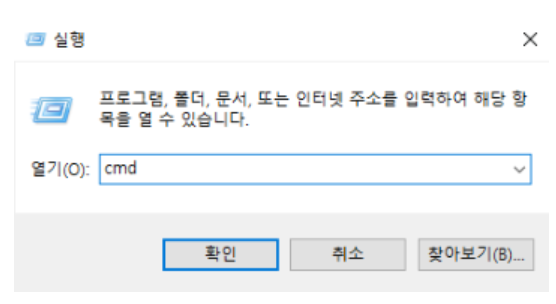 윈도우 키 + R → ‘cmd’ 입력 후 엔터