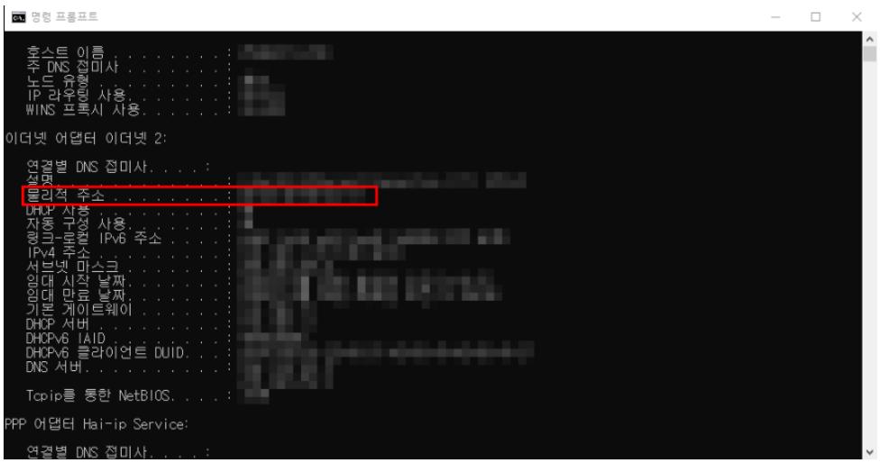 지금까지 mac 주소 확인 방법 두 가지를 살펴봤습니다.
