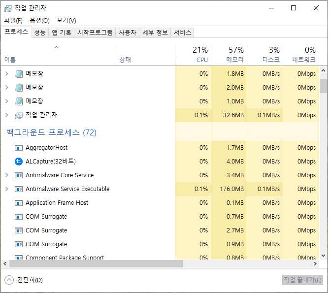 Ctrl + Shift + Esc → 불필요한 프로그램 종료