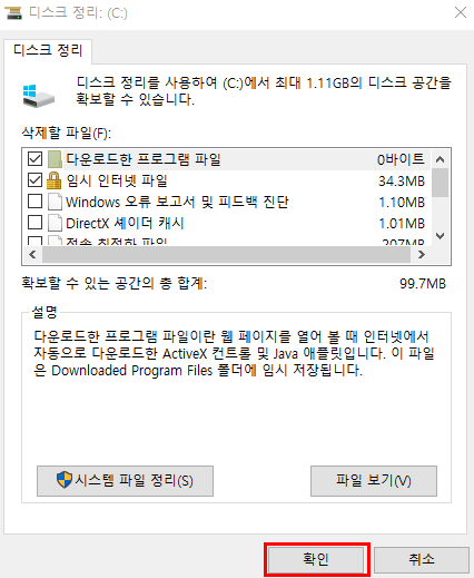 불필요한 파일 정리 | 임시 파일, 중복 파일 주기적 삭제 | HDD 부담 감소, 성능 유지 |