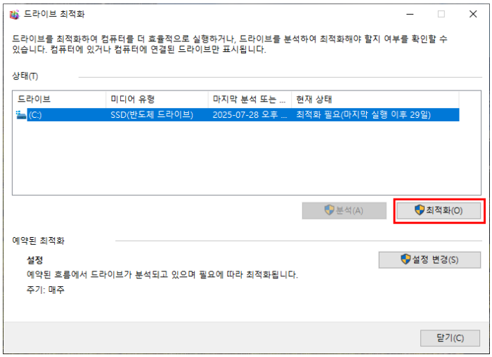 Windows 기본 도구 | 디스크 정리, 디스크 조각 모음 등 기본 최적화 기능 제공 |