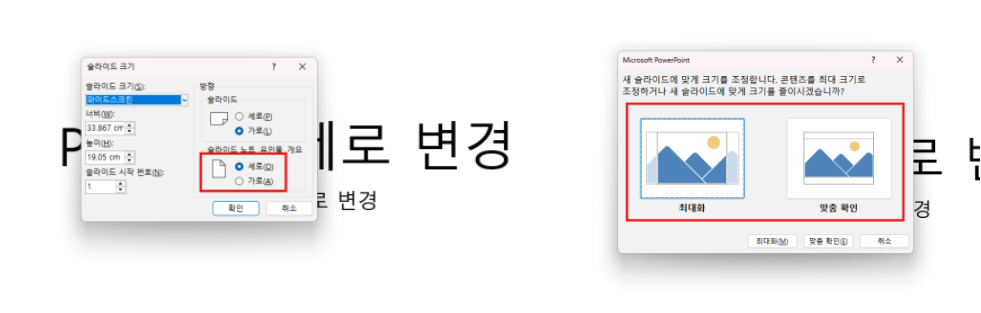 | 최대화 | 기존 내용을 새 슬라이드 크기에 맞게 확대 |