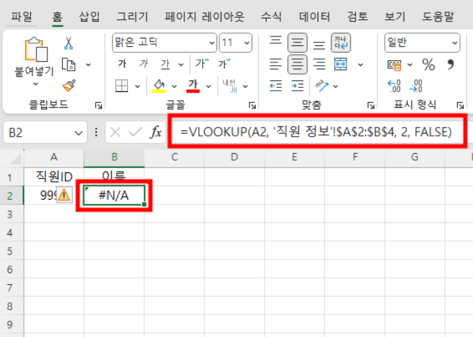 #N/A 오류 해결 방법 (값을 찾을 수 없음)