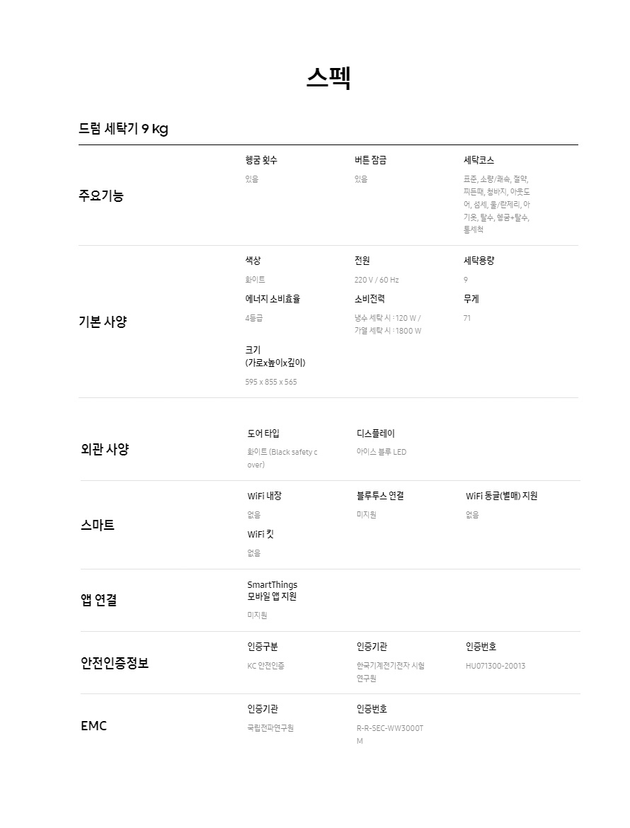 #가장 인기 있는#가성비삼성 (WW90T3000KW)삼성 버블샷 드럼세탁기 9kg (화이트)구매후기1건제휴 카드 할인 선택LG헬로비전 롯데카드최대 -20,000원 할인약정기간60개월48개월36개월24개월12개월관리방법관리없음관리주기관리주기 없음 관리주기 없음