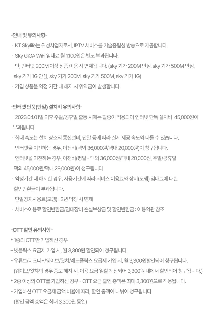 * 셀프 개통 상품은 스카이라이프에서 상담, 접수, 사후관리까지 전담하는 상품입니다.따라서 아정당 유선 상담을 통한 가입은 불가하며, 셀프 개통 상품은 유선 상담 상품과 별개의 상품임을 안내드립니다.